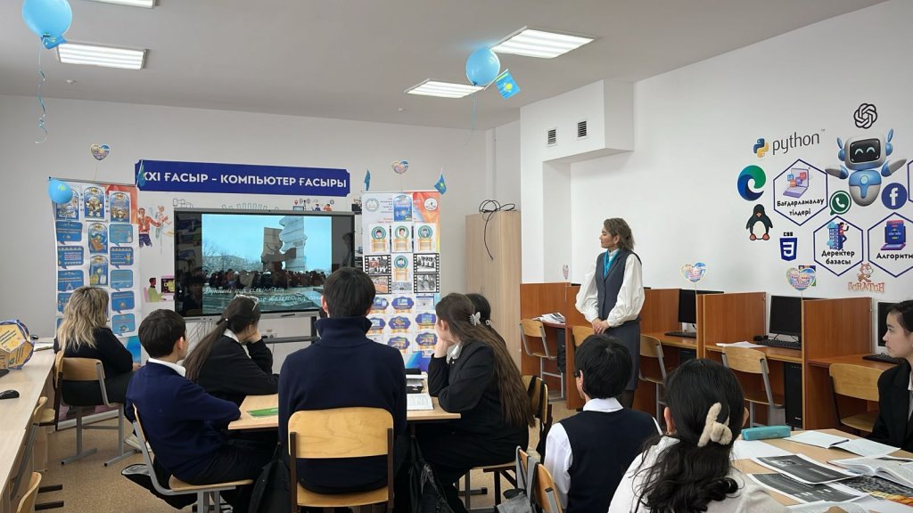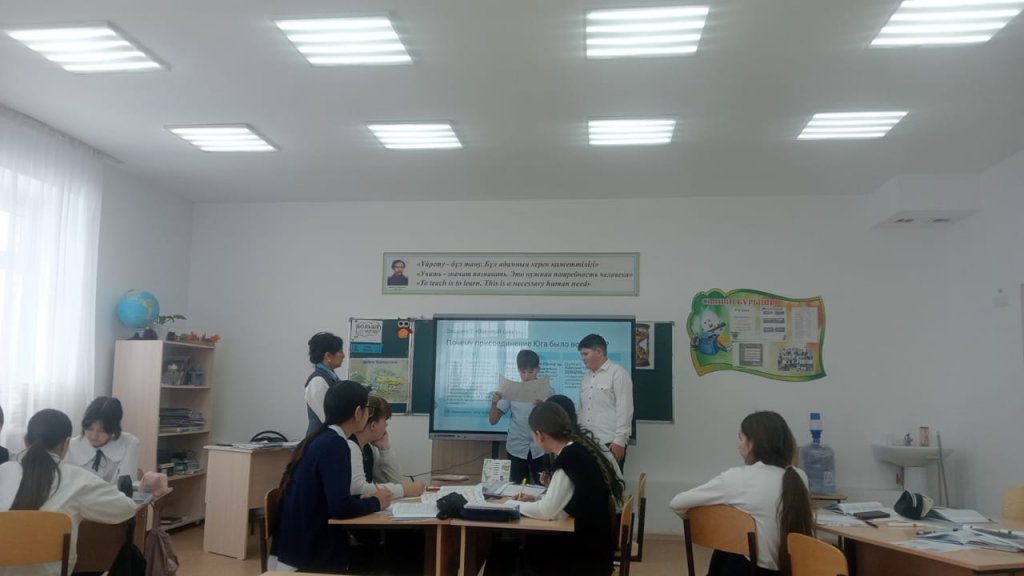 Бүгін 7 «Б» сыныбында С.Е. Кулюбаева Қазақстан тарихы пәнінен «Қазақстанның оңтүстік өңірлерінің Ресей империясына қосылуының қандай ерекшеліктері болды?» тақырыбында ашық сабақ өткізді.