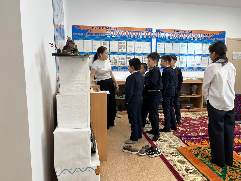 Тарих пәнінің мұғалімі А.А. Тузелованың ұйымдастыруымен 5–6 сынып оқушыларына арналған мектеп музейіне танымдық саяхат өткізілді.