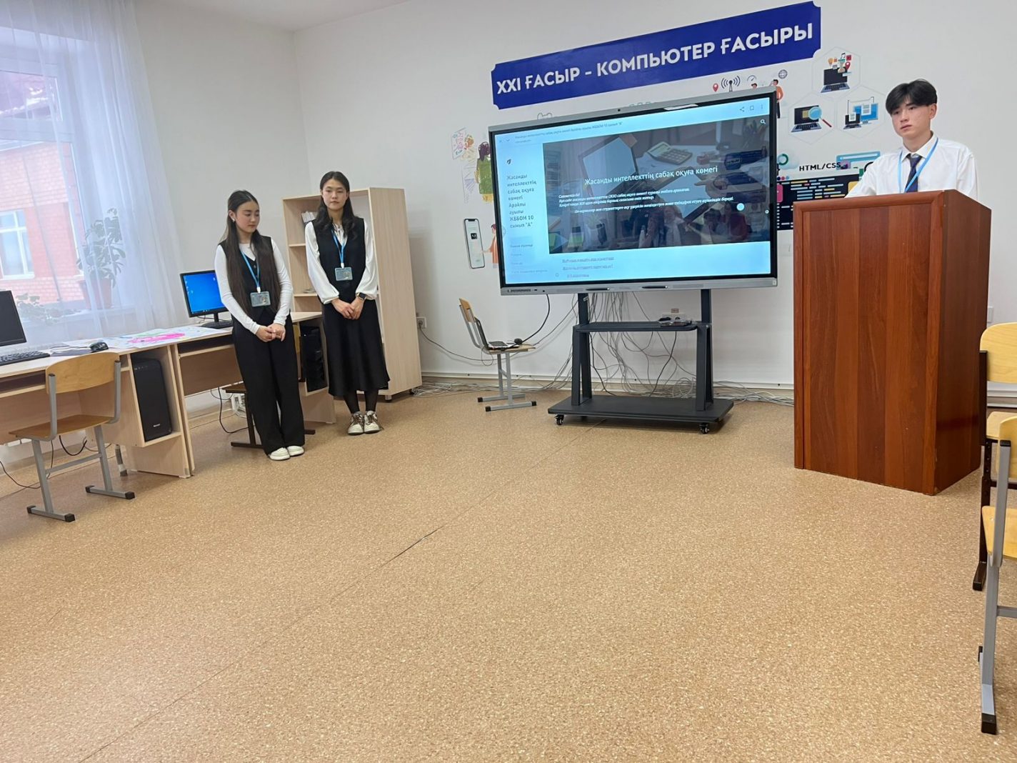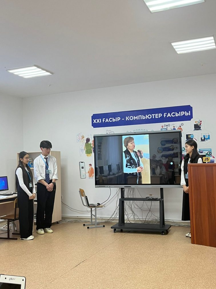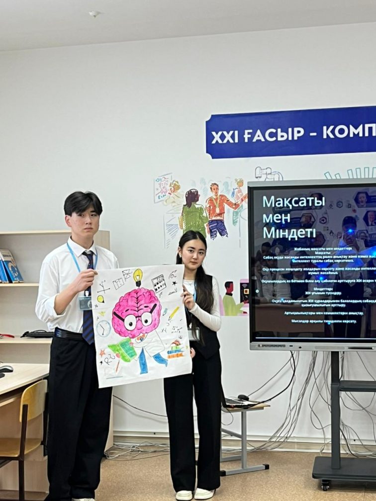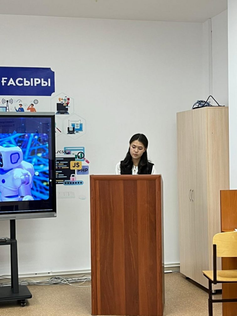 Бүгін 10 "А" сынып оқушылары Жұман Әліби, Елемесова Дилара және Қызбелбаева Мадина "Жасанды интеллекттің сабақ оқуға көмегі" тақырыбында өз жобаларын таныстырды.